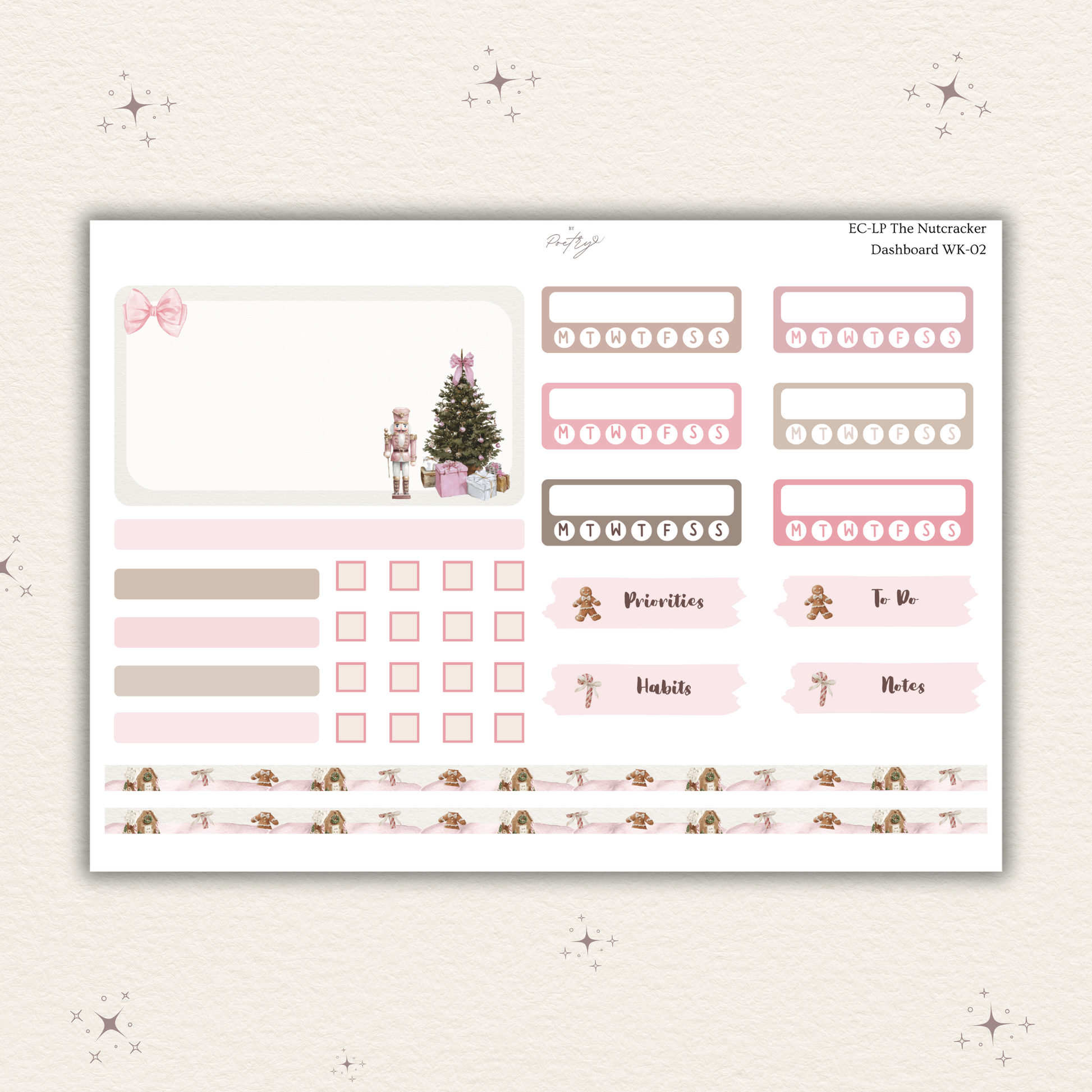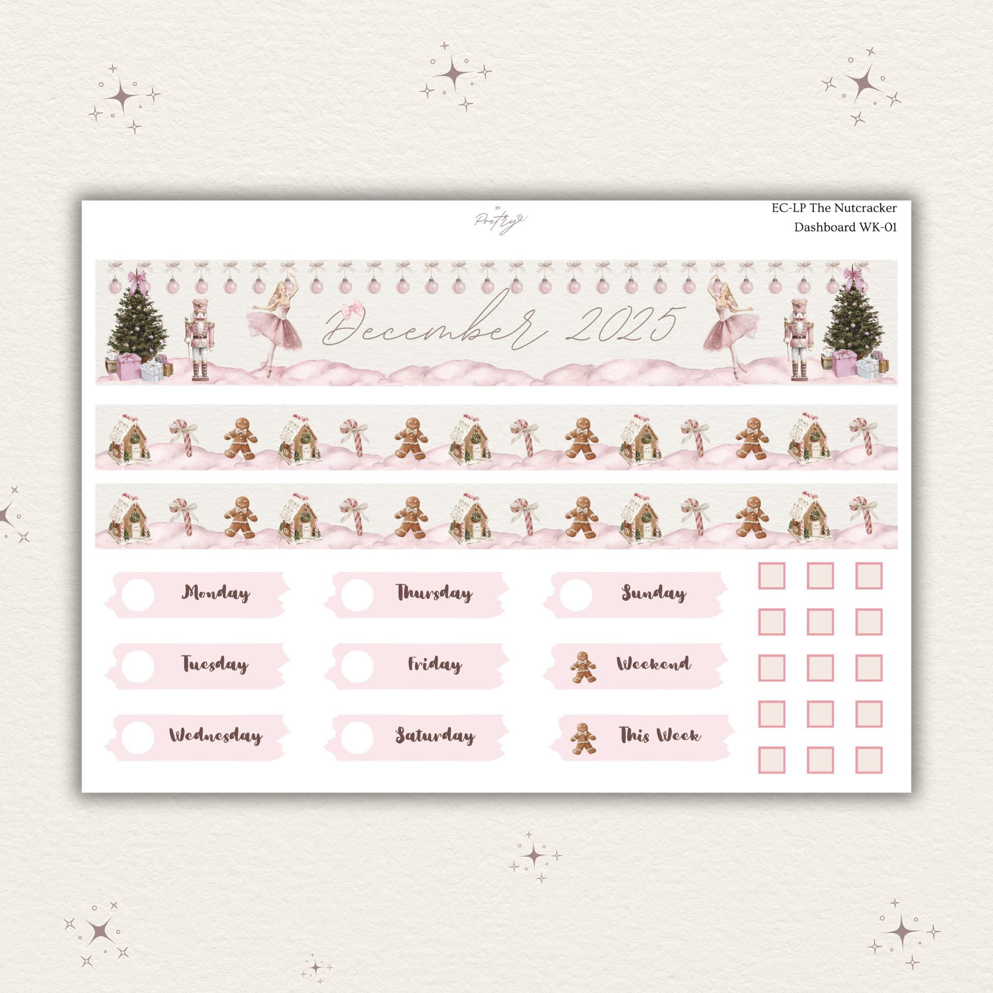 After pouring my heart into the December Monthly Kit, I wasn't ready to let go of this dreamy theme! I designed this matching Weekly Dashboard kit specifically so you can carry that soft, ballet-inspired magic from your monthly view straight into your weekly pages. It features the same blush pinks and watercolor nutcrackers you love, creating a perfectly cohesive holiday setup.